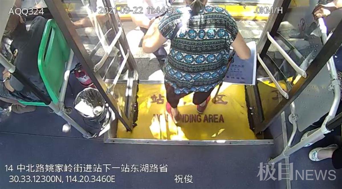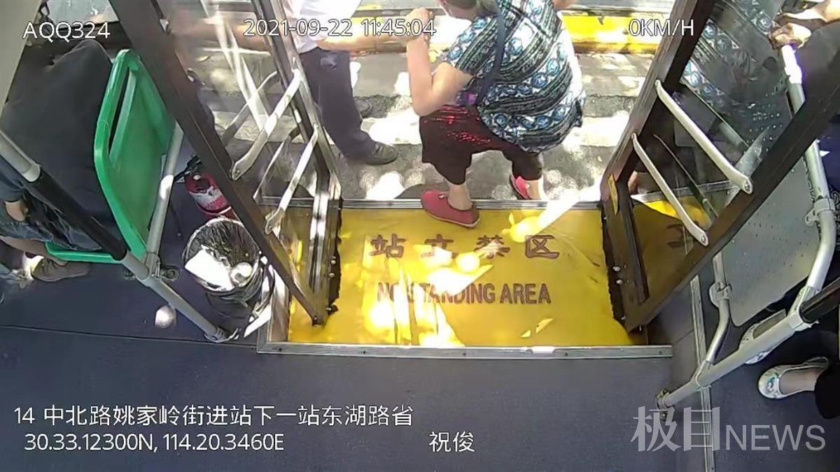 记者在车载监控视频中看到,11时44分,车辆到达中北路姚家岭,14路673号车司机祝俊将老人于车厢后门扶下车。
