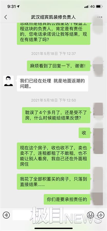 “我去收房时看到房子像是被淹过,现在过了8个月,还没收房。”最近,业主肖女士向极目新闻反映,她在汉阳纽宾凯公园里购买了一套房子,今年1月收房时发现渗水问题,要求开发商处理,因对处理不满意,至今仍未收房。对此,开发商相关负责人表示,一直在为业主处理,将给客户满意的答复。