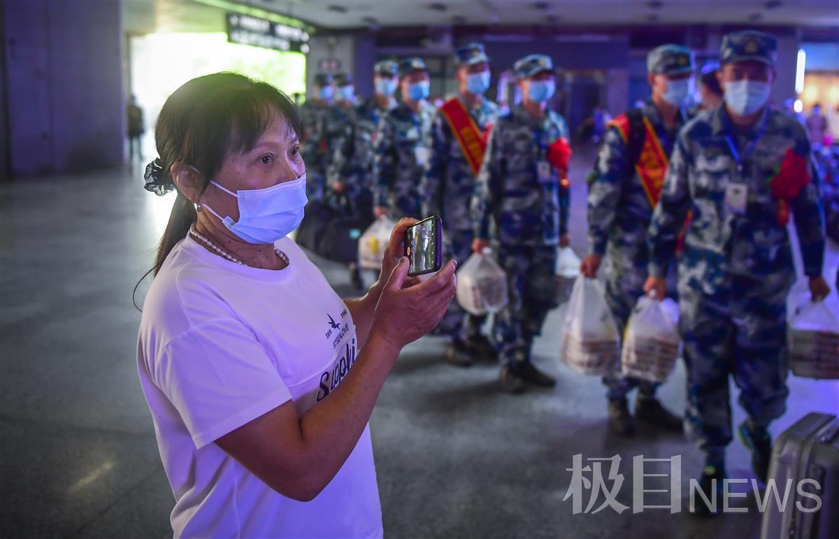 19岁的秦子恒来自武昌首义学院,他说,爷爷奶奶其实从河南老家来武汉已经有一段日子了,但因为部队管理的规定,走之前也没能和他们好好说上几句话。到了部队,他想争取立功,干更长的时间,用实际行动告诉爷爷奶奶,自己在部队得到了锻炼。