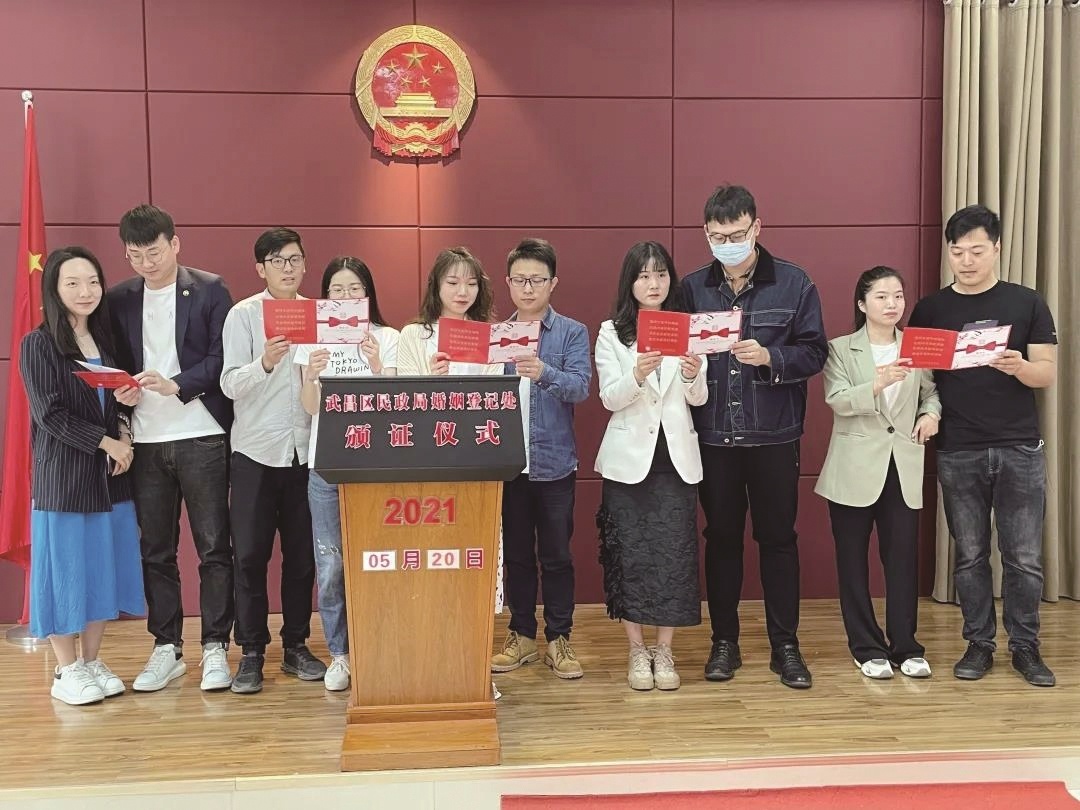 武昌区民政局有关负责人介绍,该区积极探索具有时代气息的“互联网+结婚颁证”仪式,让新人可以邀请不同地域的亲朋好友,通过互联网共同见证幸福时刻。