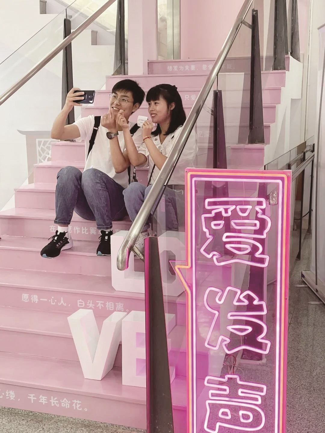 新人在办证大厅拍照留念