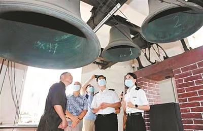 机械塔钟调研团队在广州粤海关旧址钟楼开展调查。