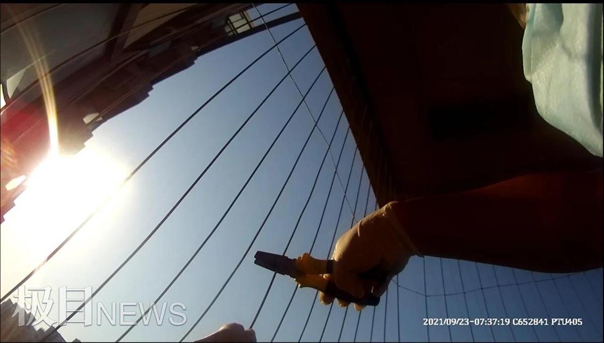 时间紧迫,经房主同意后,民警一边安抚小女孩情绪,一边使用破拆工具对12楼住户家里的防护网进行拆除。令人感动的是,12楼住户不仅支持民警拆除自家防护网,还主动拿出老虎钳帮助一起拆网。