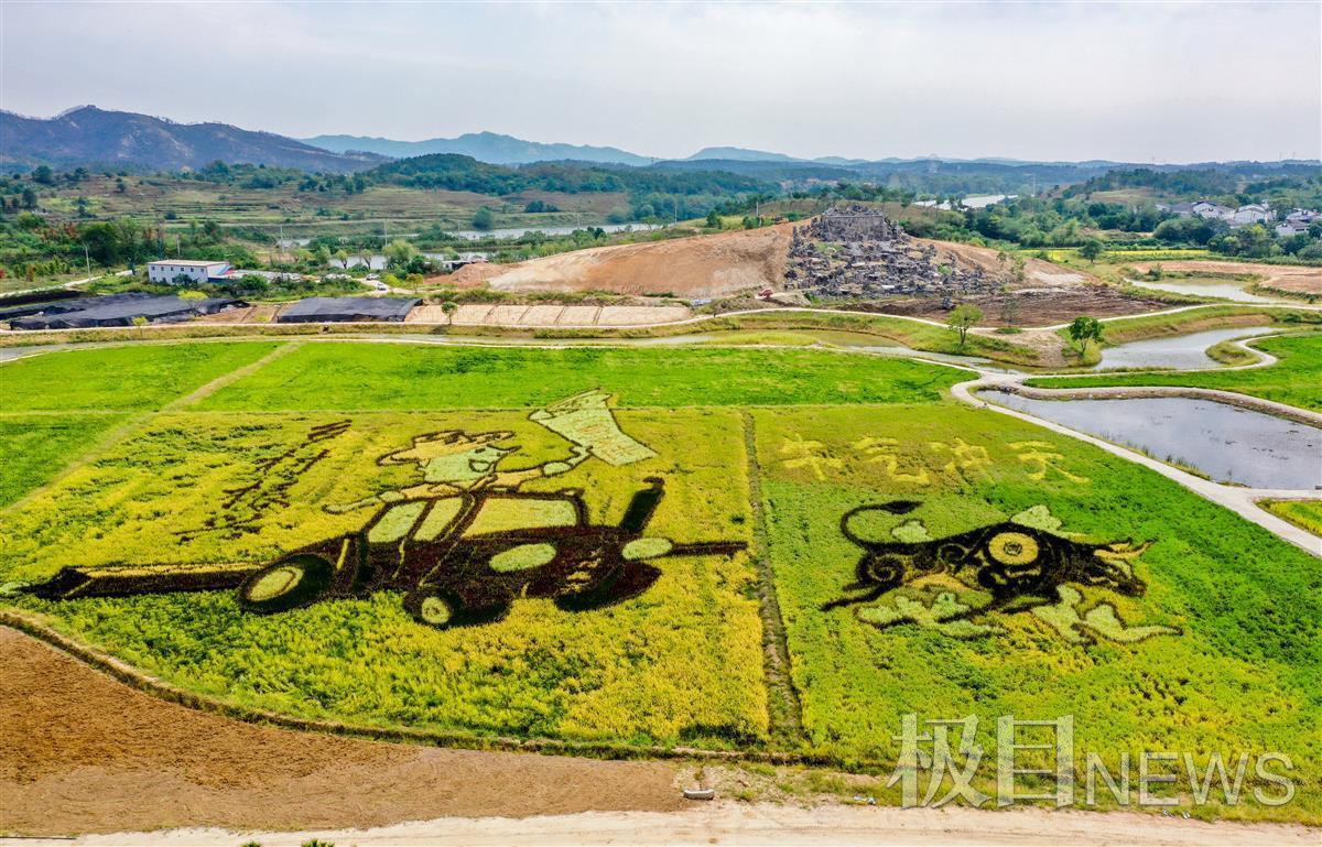走进正在建设中的木兰栖塘现代农业产业园项目,稻田中的不统一颜色引起了记者的注意,远远望去,稻田中有绿色、黄色、黑色等稻谷,而站在高处,一幅幅画作出现在记者的眼前,以“乡村振兴”“永远跟党走”为主题的稻田画用生动的形式表现出来,40亩的稻田里也是硕果累累,载满了收获的喜悦。