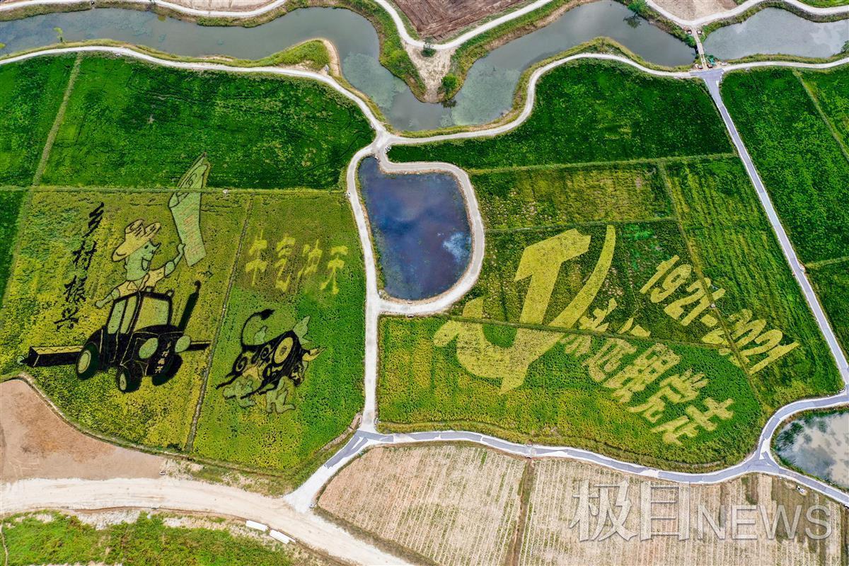 以大地为画板、水稻为墨,一幅幅生动的画作展现在眼前。眼下,武汉市黄陂区的水稻田里即将迎来收获的季节,而在黄陂区木兰大道旁,罗汉街的研子村,这里的40亩稻田呈现出3幅画作,让人惊叹。