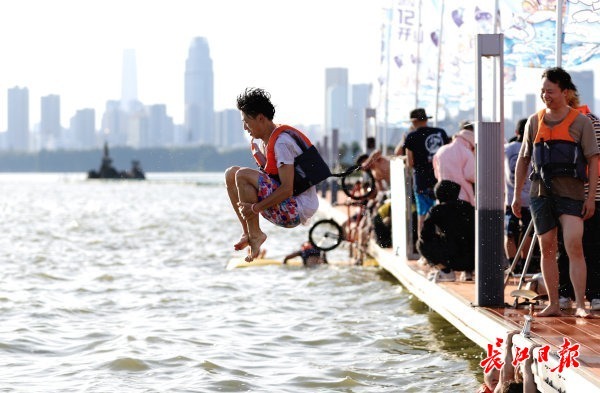 “武汉就是依水而生的城市,武汉人对长江和东湖大多有着特殊的感情,在东湖边成长的新武汉人更是把青春故事留在东湖,我们爱这片水!”看着车手酣畅淋漓跃入湖水,参加活动的武汉人张樊掏出电子设备,也在欢呼声中跳入湖水中“清凉”了一番,“这是我们对武汉热爱的一种表达方式,起初是呼吁大众保护城市湿地,慢慢则成为武汉人的情怀了,极限而深情。”