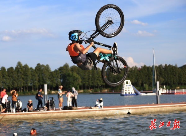 长江日报大武汉客户端9月25日讯 身骑单车,冲坡后纵身跃入东湖,水花四起、阵阵叫好,25日,在位于东湖绿道湖心岛帆船基地火热举行的东湖造浪节,现场欢呼声不绝于耳。