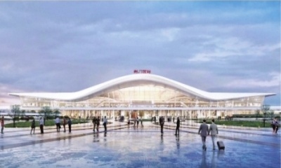 荆门西站效果图。站房造型取自“凤舞荆楚,振翅高飞”,以舒展流畅的曲线造型凸显荆门航空文化,一飞冲天的姿态表达出强劲的发展态势。