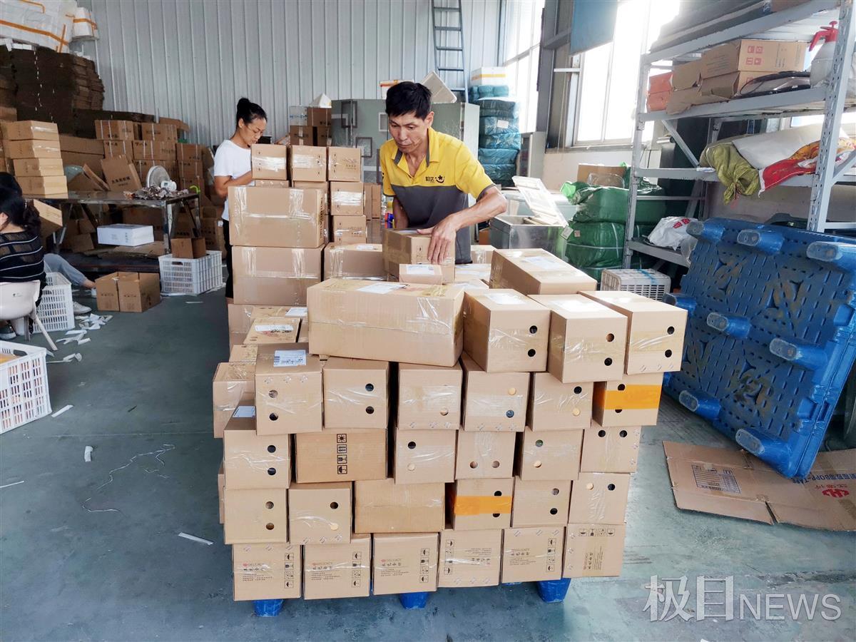 9月25日下午,湖北长阳土家族自治县农村电商交通物流产业园里,工作人员正在紧张有序地对接物品、扫描分拣、收寄快递。中秋、国庆双节期间,许多土家特色礼品都在这里汇集发往全国各地。