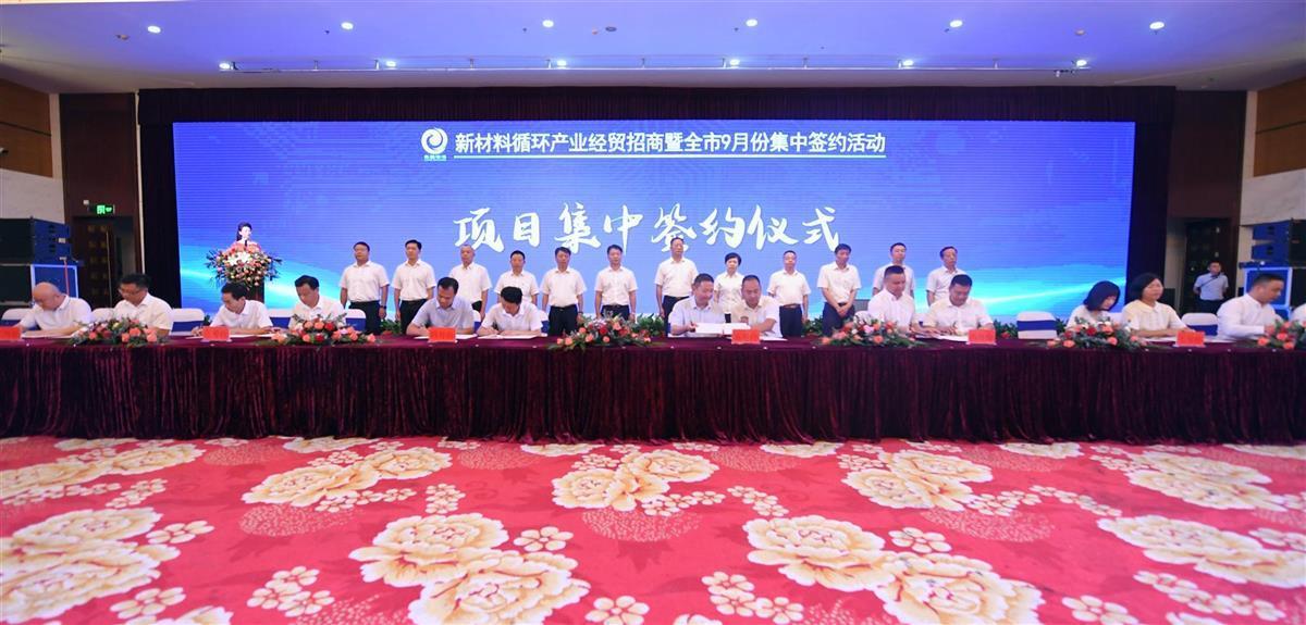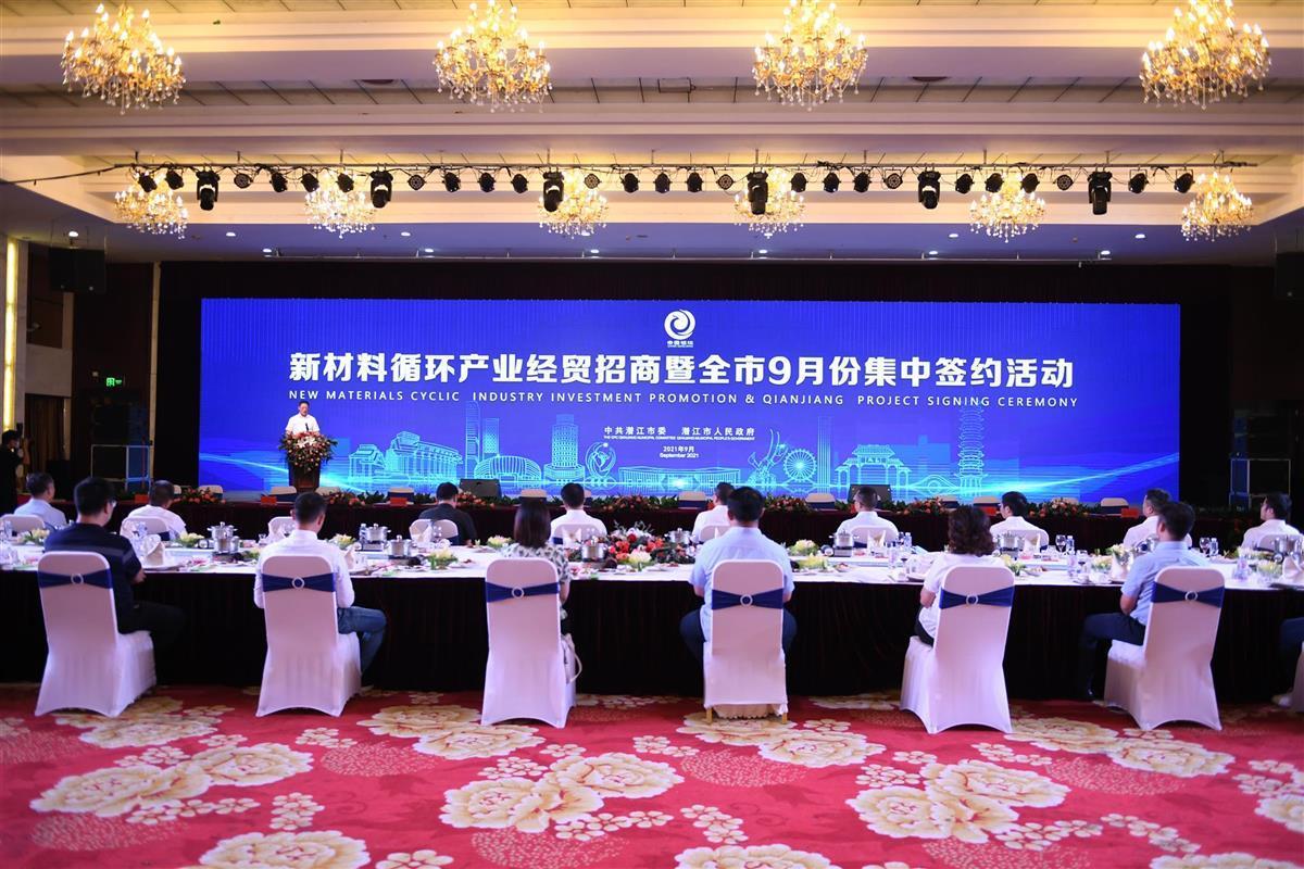 又是一年秋草香,八方宾客聚水乡。9月26日,潜江市举行新材料循环产业经贸招商暨全市9月项目集中签约活动,全国各地新材料循环产业领域的精英翘楚欢聚一堂,共叙真挚情谊,共话美好未来,共谋发展蓝图。据了解,本次活动成功签约32个项目,协议引资总额达143.23亿元。