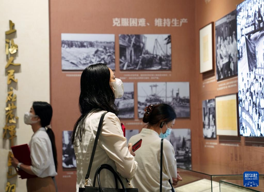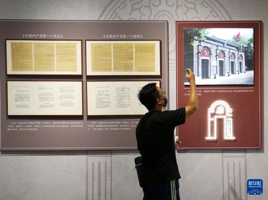 9月26日,观众在参观展览。当日,“红色珍档见证中国共产党百年奋斗之路”档案展在上海市档案馆新馆正式开展,展品包括中央档案馆、上海市档案馆馆藏珍档,以及向社会征集的实物、照片、视频等。新华社记者 刘颖 摄