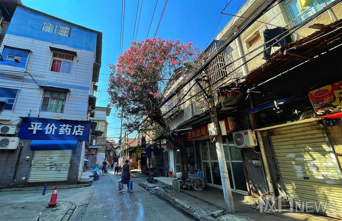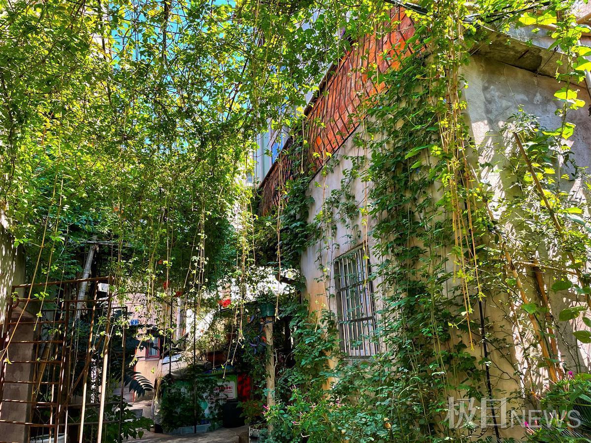 9月27日,极目新闻记者在硚口唐家巷看到,小巷中,绿色植物瀑布般倾泻而下,行走其中,仿佛置身绿色长廊。夹竹桃沿着墙壁伸向天空,千百朵红花簇拥在一起,张望着来来往往的人。巷子建设时间久远,这些绿树鲜花就如那些老人,宁静安详的守护着小巷,成为一道道风景。