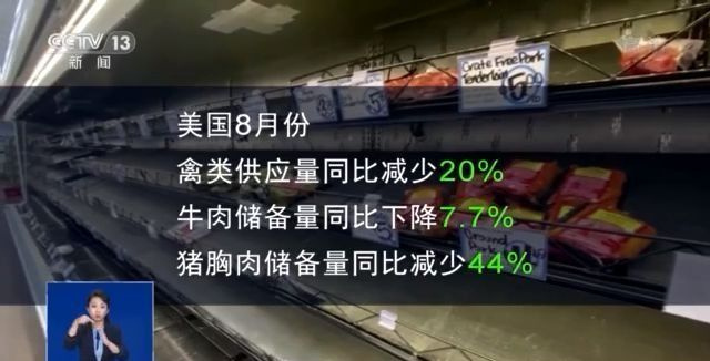 最新数据显示,美国8月份禽类供应量同比减少20%;牛肉储备同比下降7.7%;猪胸肉储备同比减少44%,降至2017年以来最低水平。