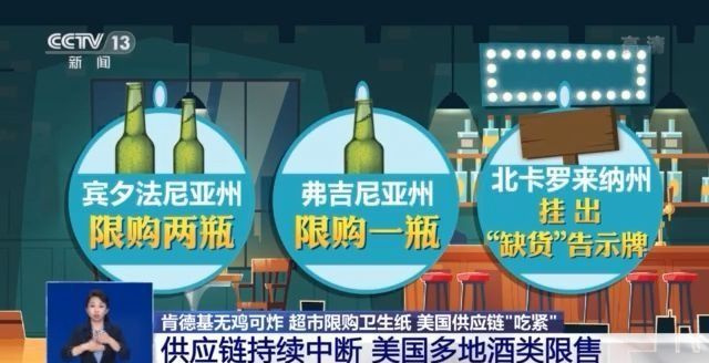 除了肉类供应短缺,美国多个州也出现了酒类供不应求的情况,部分地区甚至开始无限期限售。