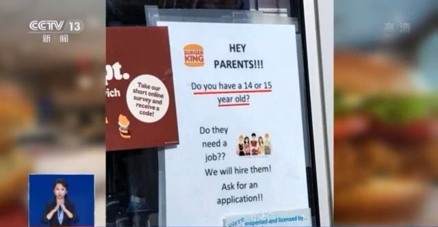 在销售端,缺人状况同样普遍。近期美国俄勒冈州梅德福市一家麦当劳公开呼吁十四五岁的孩子前去打工。
