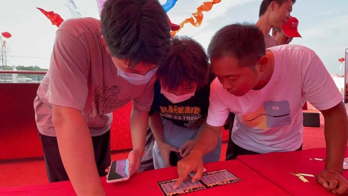 在现场免费领红包环节,众多新旧彩民纷纷拿出手机,扫码加入游戏;“大丰收”“赛龙舟”等手机游戏引来现场观众阵阵欢呼,大伙摇动手机,争抢前三,赢取工作人员现场赠送的彩票。