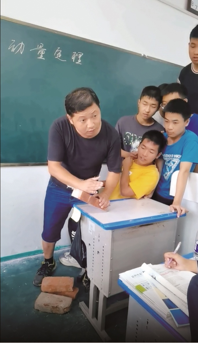 “他经常通过实践形式,向学生诠释物理奥秘,进而激发学生的学习兴趣、轻松牢记重要知识点。”监利市朱河中学分管教学的副校长瞿永明告诉极目新闻记者,在物理课上徒手劈砖,并非哗众取宠,更不是简单秀才艺,而是让学生亲手感知动量定理。