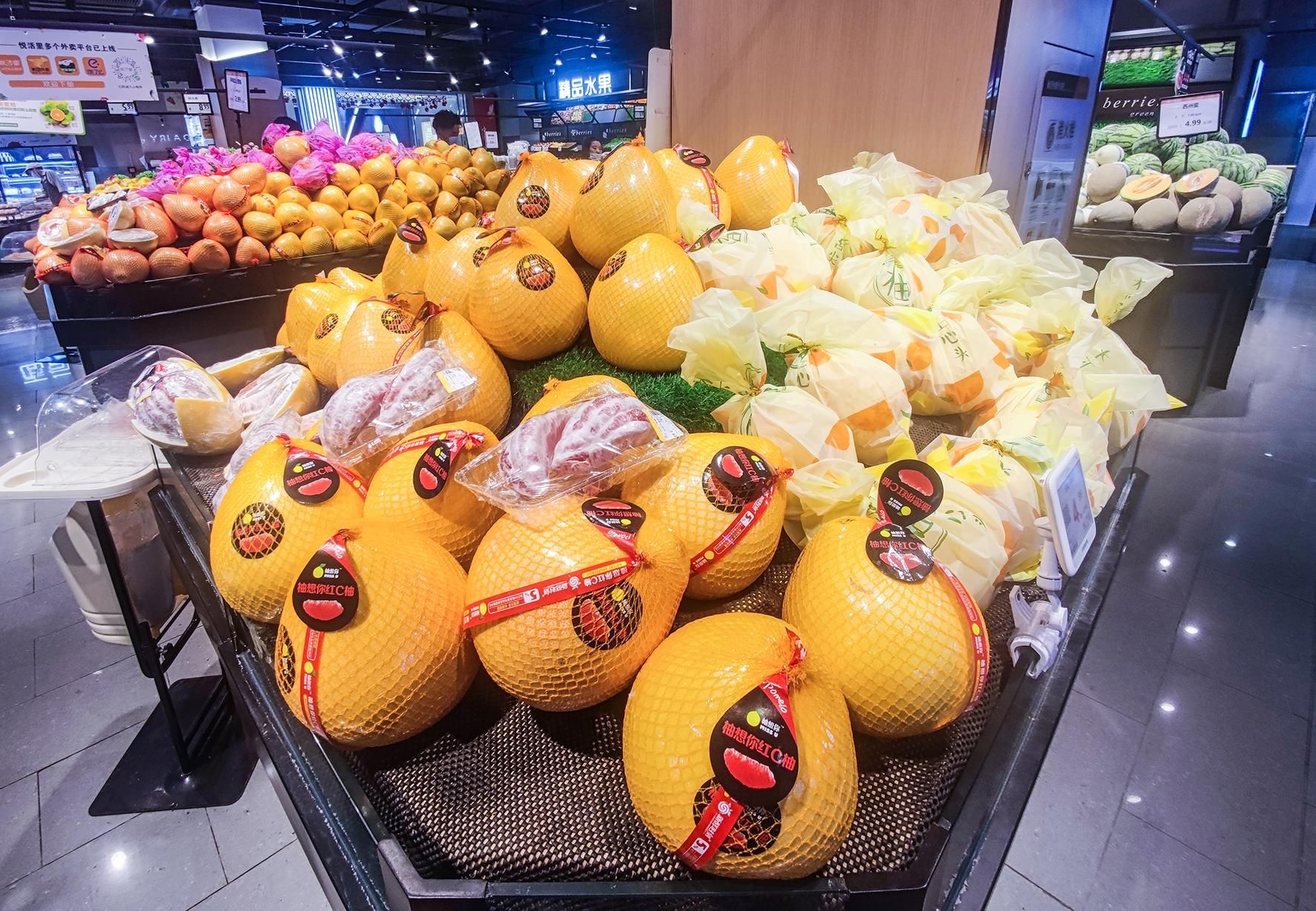 9月26日傍晚,极目新闻记者在汉口中一路的一家水果大卖场看到,属于秋天当季水果的柚子、砂梨、石榴、猕猴桃、嘎啦果等已经集中上市,摆在了店内最显眼的位置,挑选的市民也比较多。