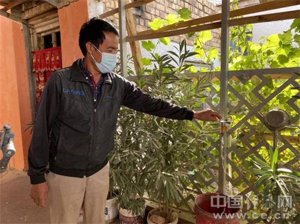 伽师村民麦合木提江-米吉提向记者展示自家安全的自来水。经济日报-中国经济网记者贾佳摄