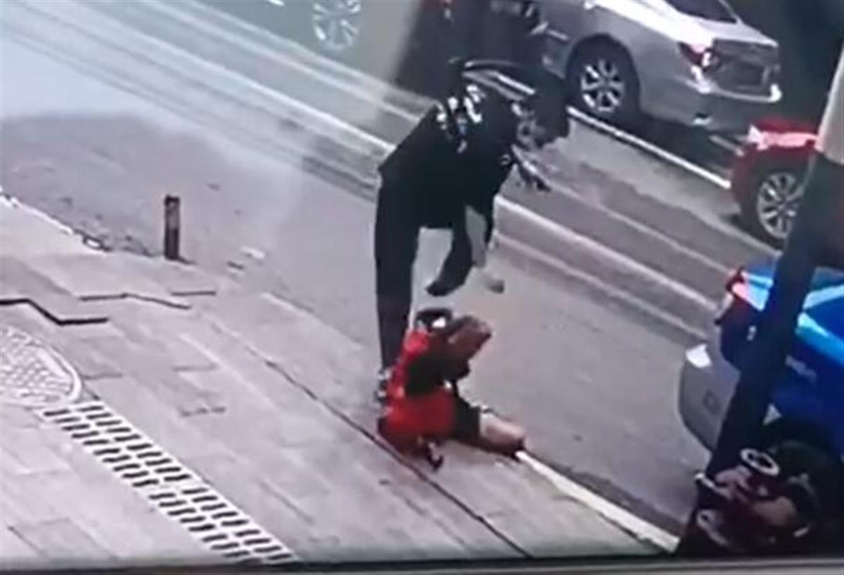现场视频显示,一红衣男孩坐在马路边,一中年男子接听电话后突然伸手打向小男孩,男孩倒地后,该男子又多次用脚踢打。小男孩向街对面逃跑后,该男子又继续追赶。
