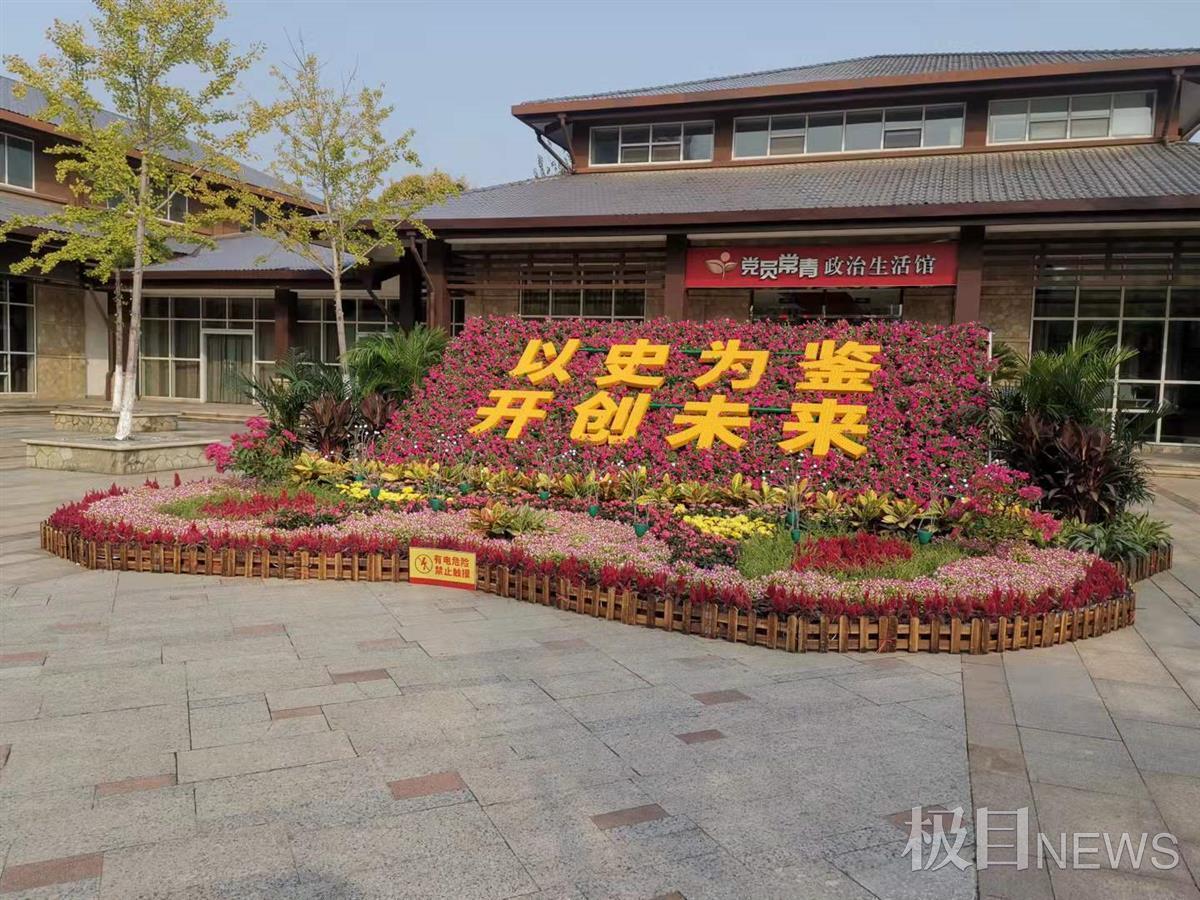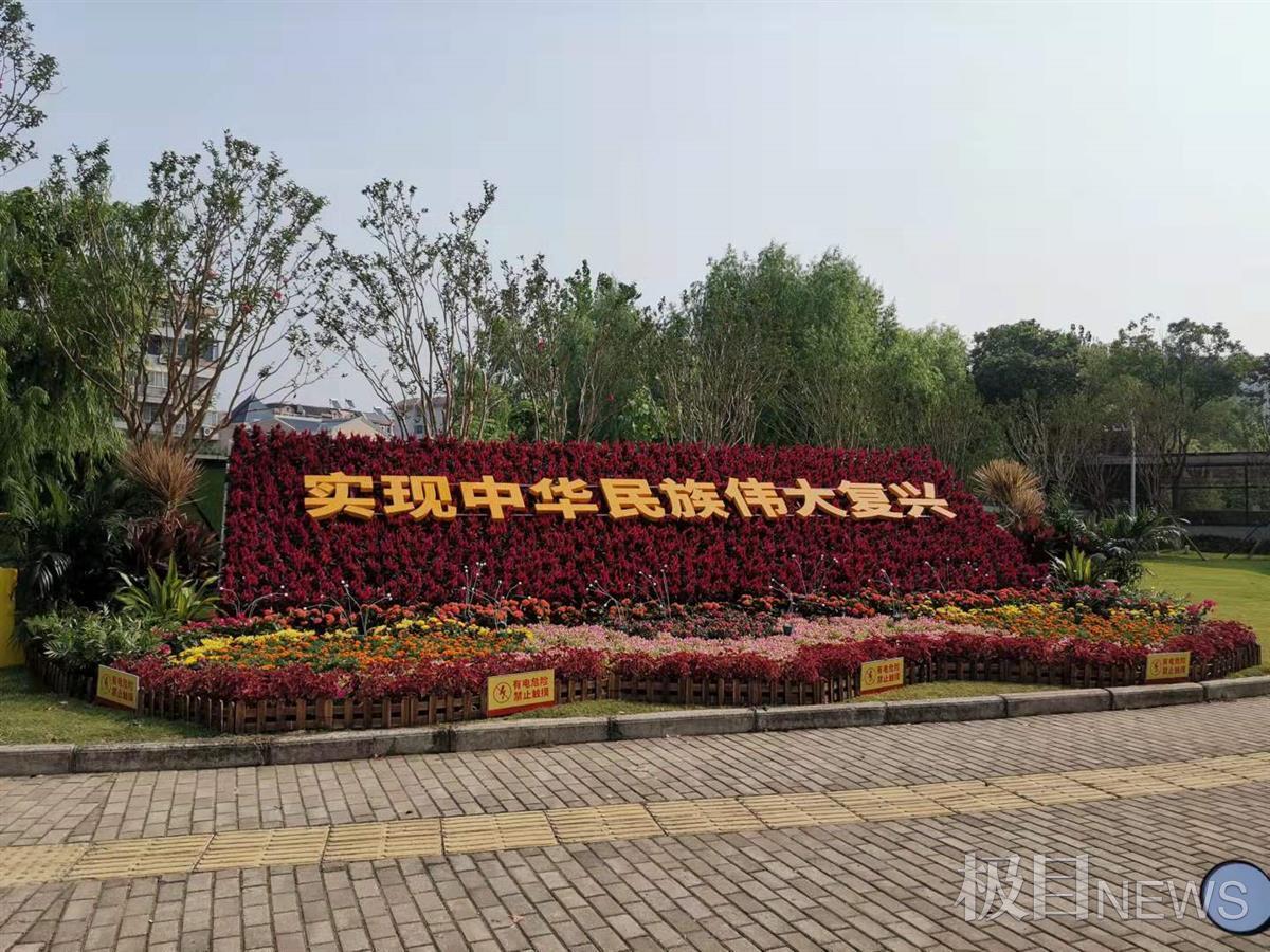 在地铁6号线轻工大学站、六小区广场、闸口、新时代文明实践中心等6处人流量较大的节点,“喜迎国庆、盛世中华”“实现中华民族伟大复兴”“以史为鉴、开创未来”“清廉家风、代代相传”等标语被以红色为主基调的鲜花簇拥着,组成了一个个别具一格的花卉景观,色彩鲜艳、品种丰富、造型喜庆,引人注目。