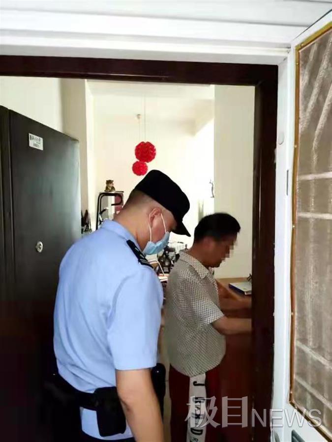 大约1个小时后,民警打听到这位老人独自居住在洞庭首府小区。民警胡继军、辅警王博一起把爹爹送回家中,又通过物业人员联系上老人的儿子,直到老人的儿子赶回。