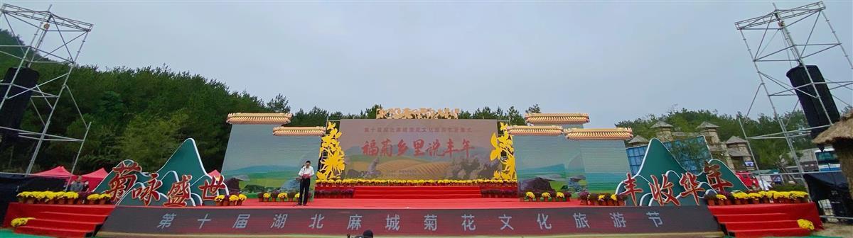 麻城市有“中国菊花创新发展之城”美誉,全市菊花种植面积10万余亩,菊花已成麻城叫得响的品牌、亮得出的名片、看得见的风景。每年菊花盛开的时候正值丰收时节,往往能给当地增添欢乐、喜庆气氛。