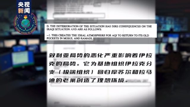到了2012年,美国国防情报局曾经在一份秘密报告中发出了警告:“叙利亚局势的恶化严重影响着伊拉克的局势。它为基地组织伊拉克分支(极端组织)回归摩苏尔和拉马迪的老巢创造了理想环境……极端组织可能通过联合其他叙利亚和伊拉克的恐怖组织,实现建立政权的目标。这将给统一的伊拉克制造巨大威胁。”