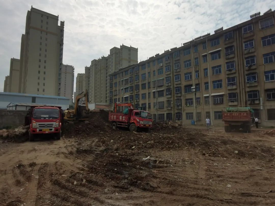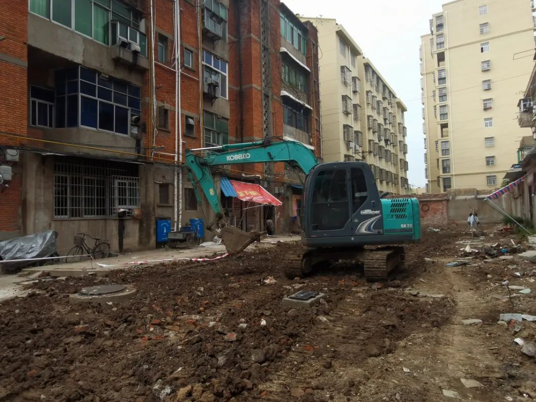 在改造项目现场,记者看到,紧挨楼体的违建房已全部拆除,公共区域的杂物也已清理干净;室外管网预埋工程已基本完工,道路硬化进程过半;小区西侧规划的小广场上,大型机械设备已进场,正在进行土地平整。