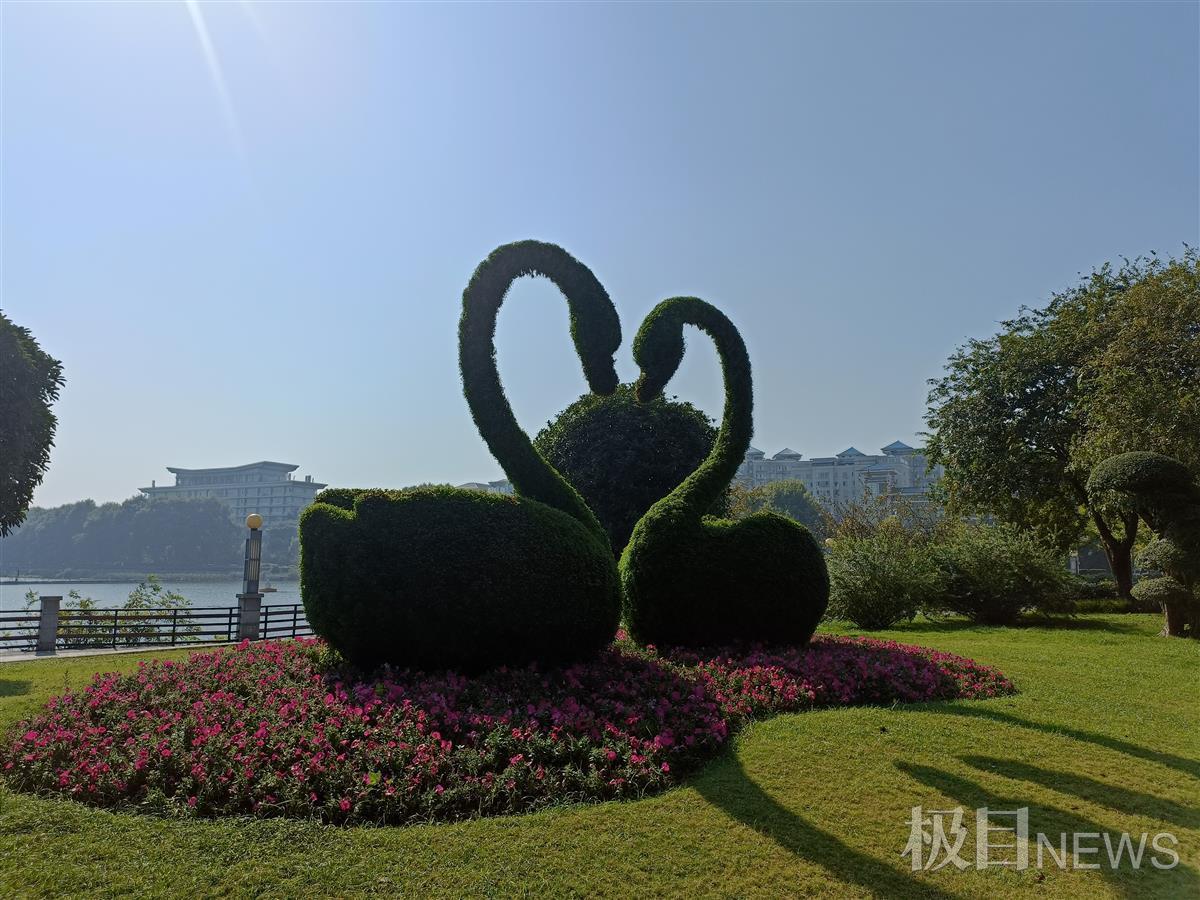 一串红,长春花,矮牵牛、三角梅争奇斗艳;“欢度国庆”、“繁花锦绣”的大型扎景引人注目;“天鹅”、“舞蝶”等绿雕维妙维肖。国庆节前夕,50万盆鲜花摆上武昌街头与公园广场,扮靓江城迎国庆。