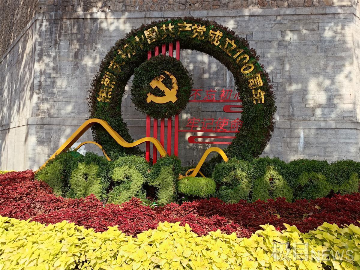 极目新闻记者在洪山礼堂世纪广场看到,这里共布置大型三角梅花箱22盆,“欢度国庆”主题扎景,设置一串红,长春花,矮牵牛、孔雀草1.8万盆。洪山路东一路口布置大型三角梅花箱10盆,设置摆花1座。