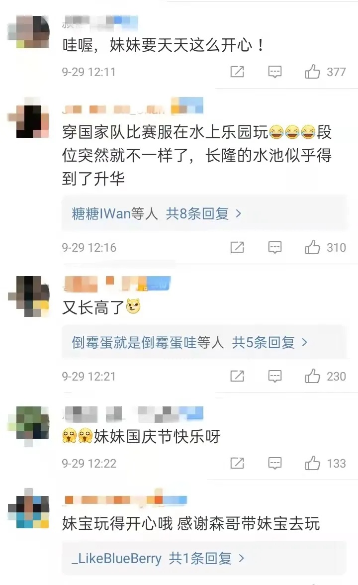 9月29日,全红婵在个人社交媒体上晒出了一组图片,照片中记录着她和朋友们在动物园和游乐园游玩的瞬间。