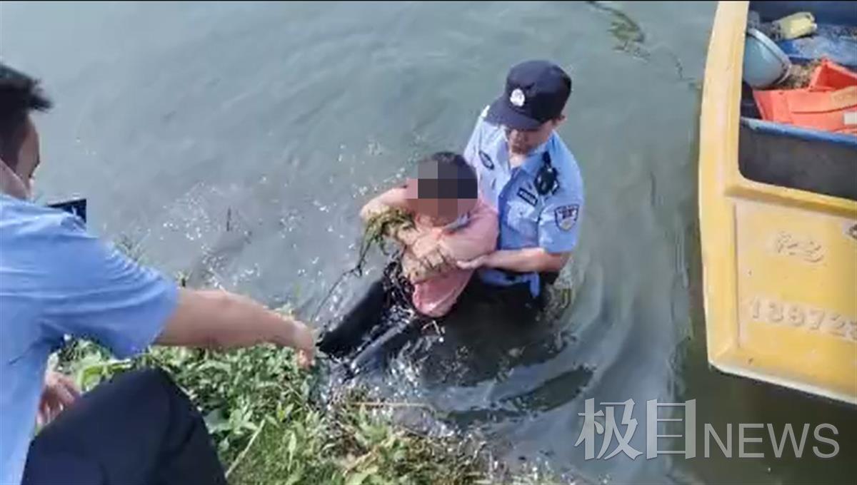 民警沿着南湖岸边寻找,越过草丛发现有一艘木船停靠在岸边,民警上船观察。“找到了!”众人发现溺水者就在船头和岸边的杂草之间,还有生命迹象。民警袁小德一刻也没迟疑,跳入水中将老人托起,众人合力将落水老人拉到岸边。上岸后民警才发现自己的两部手机都已被湖水浸湿。