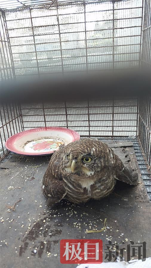 9月29日上午,雨过天晴,竹溪县林业局中心苗圃的工作人员在查看种苗长势时,发现一只被困的猫头鹰。