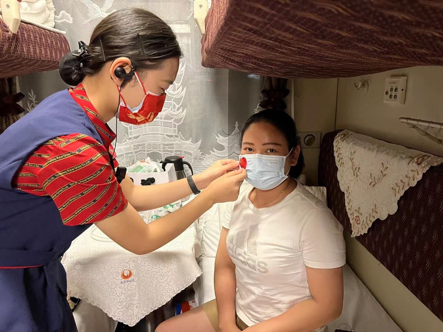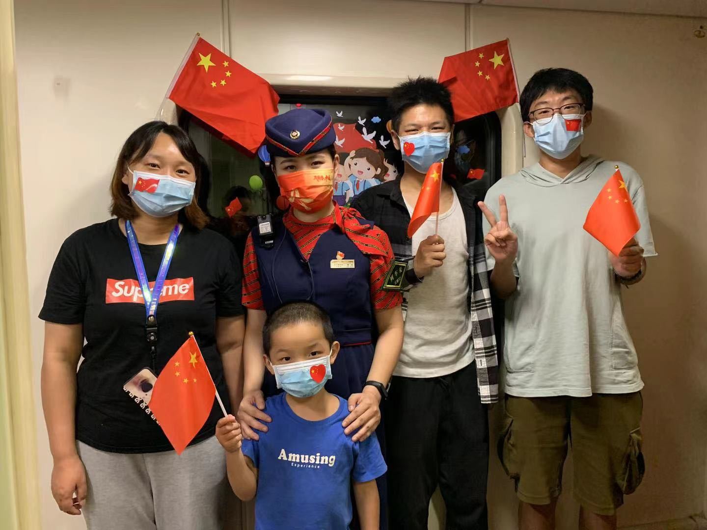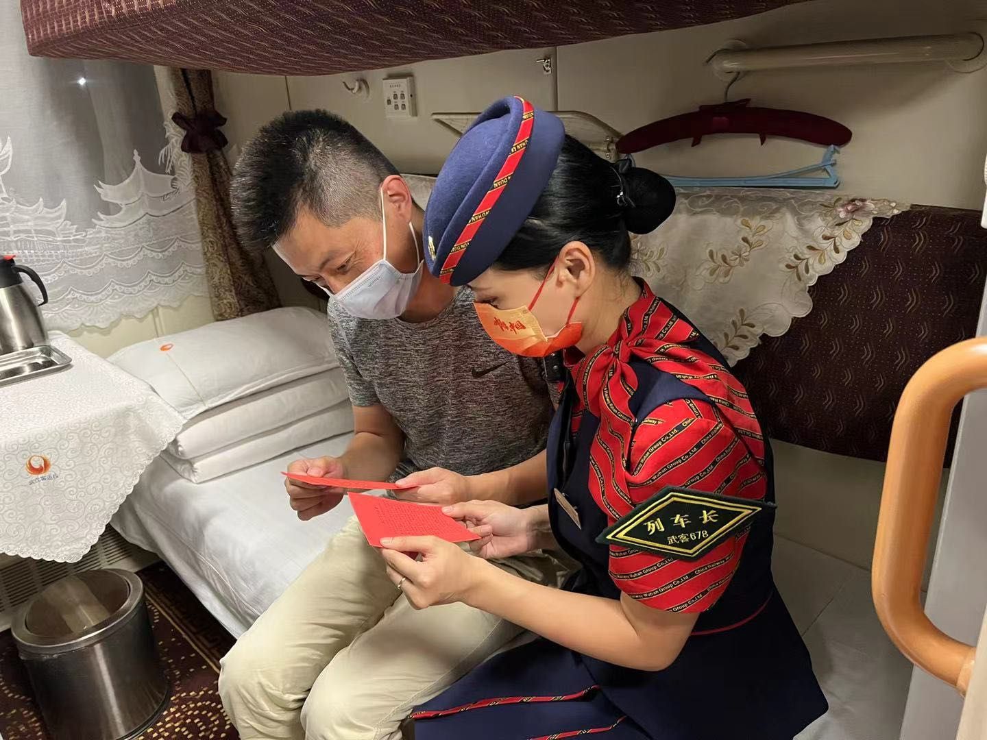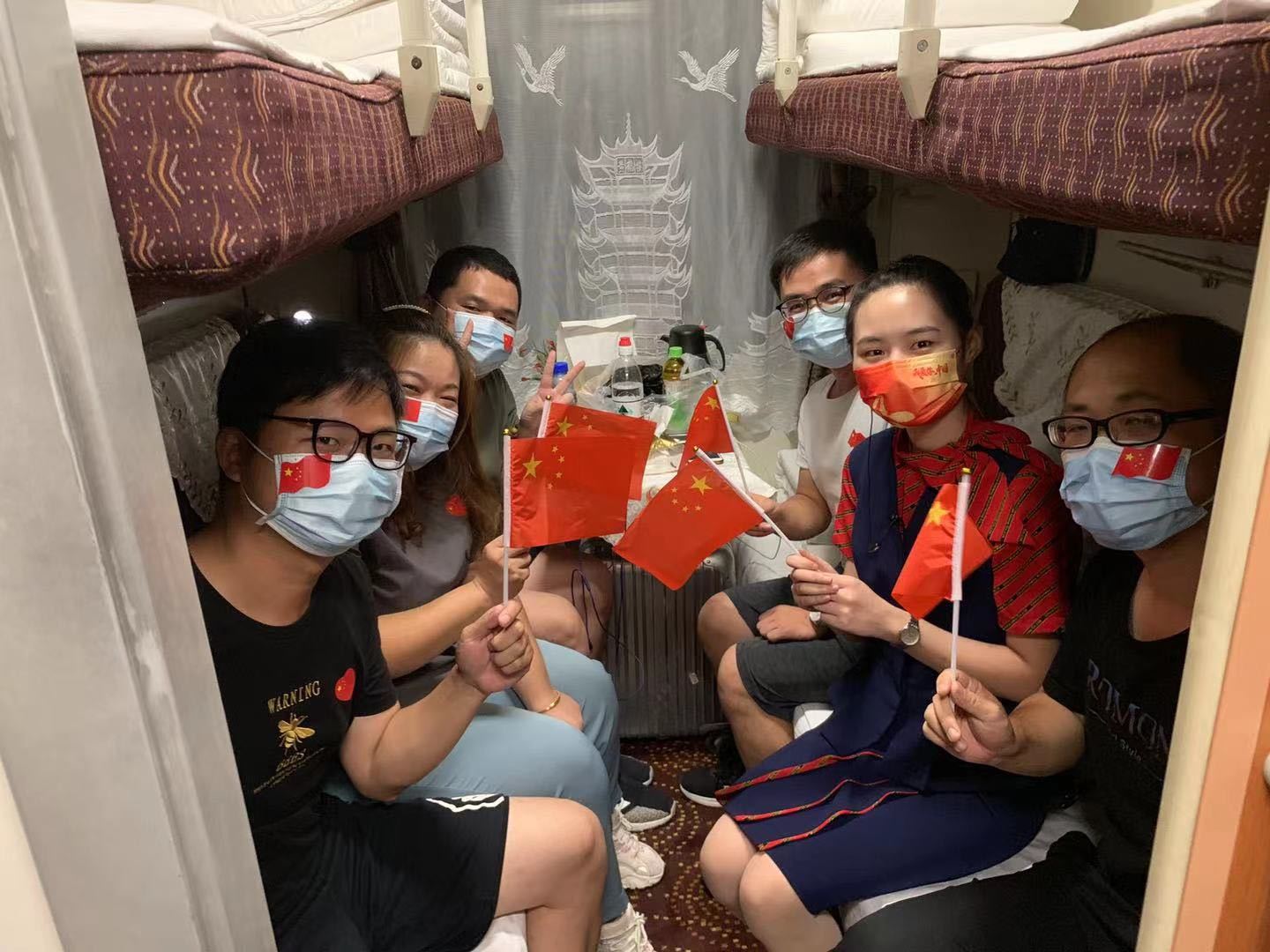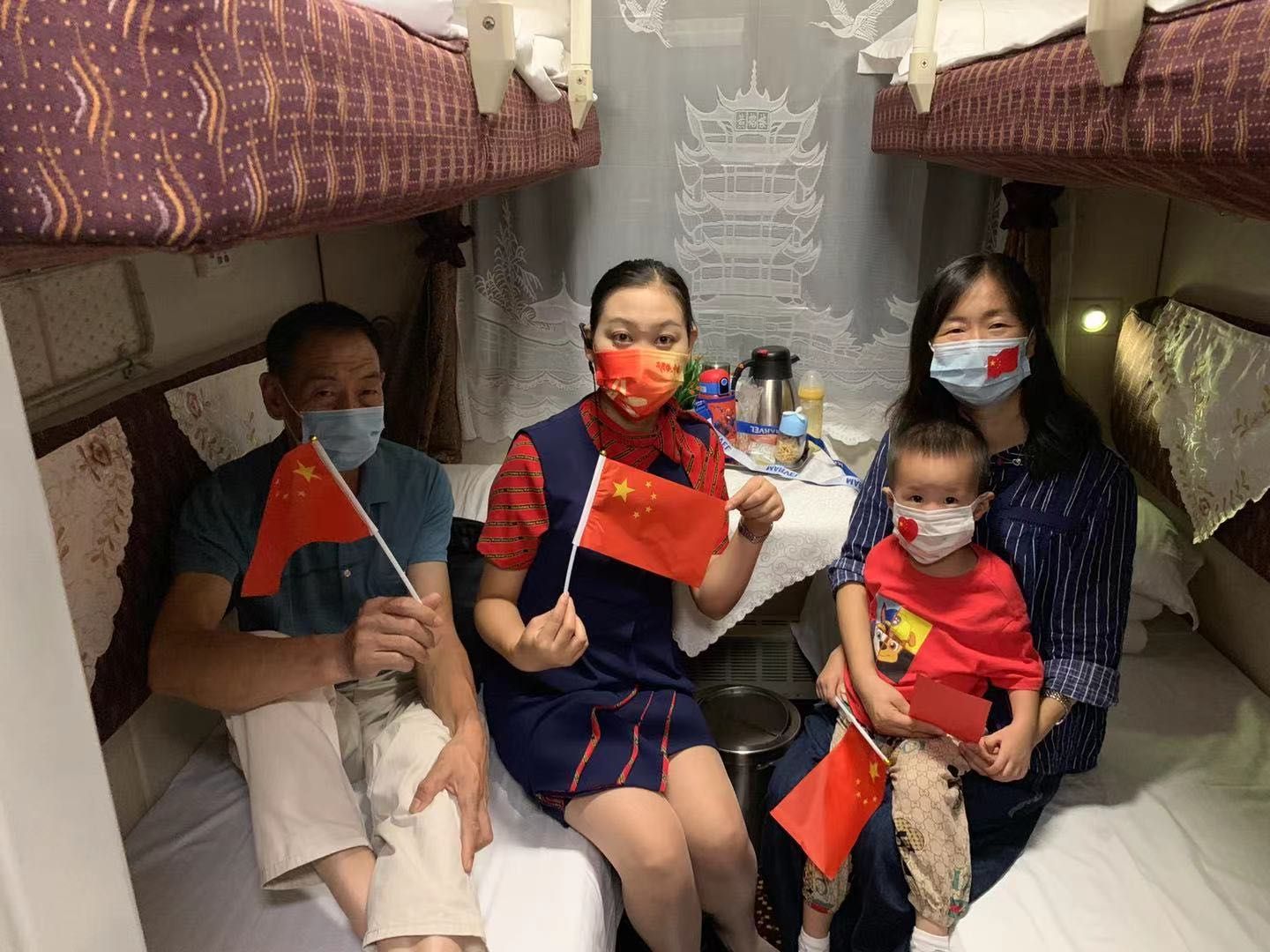 长江日报大武汉客户端讯 9月28日晚,在从武昌开往北京西的z38次列车上,车厢里面开展了“讲国庆小故事,喜迎国庆”的活动。列车长曹萍带领工作人员将车厢进行了布置,向旅客发放小国旗、国旗贴纸,利用自己制作的“国庆小故事”卡片,为广大旅客讲述《国庆节的由来》《升第一面国旗》《关于国歌》等8个关于国庆节的小故事,带领旅客了解祖国成长史,激发爱国热情和自豪感,吸引不少旅客积极参与。来自武汉的张女士说:“这次活动也让小朋友们能够学习更多的国庆知识,非常有意义!”
