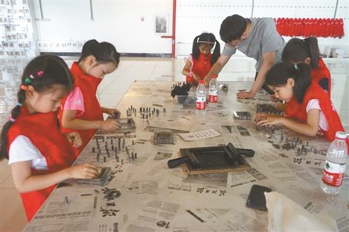 2018年,港澳台地区和华人华侨子女代表体验活字印刷术。
