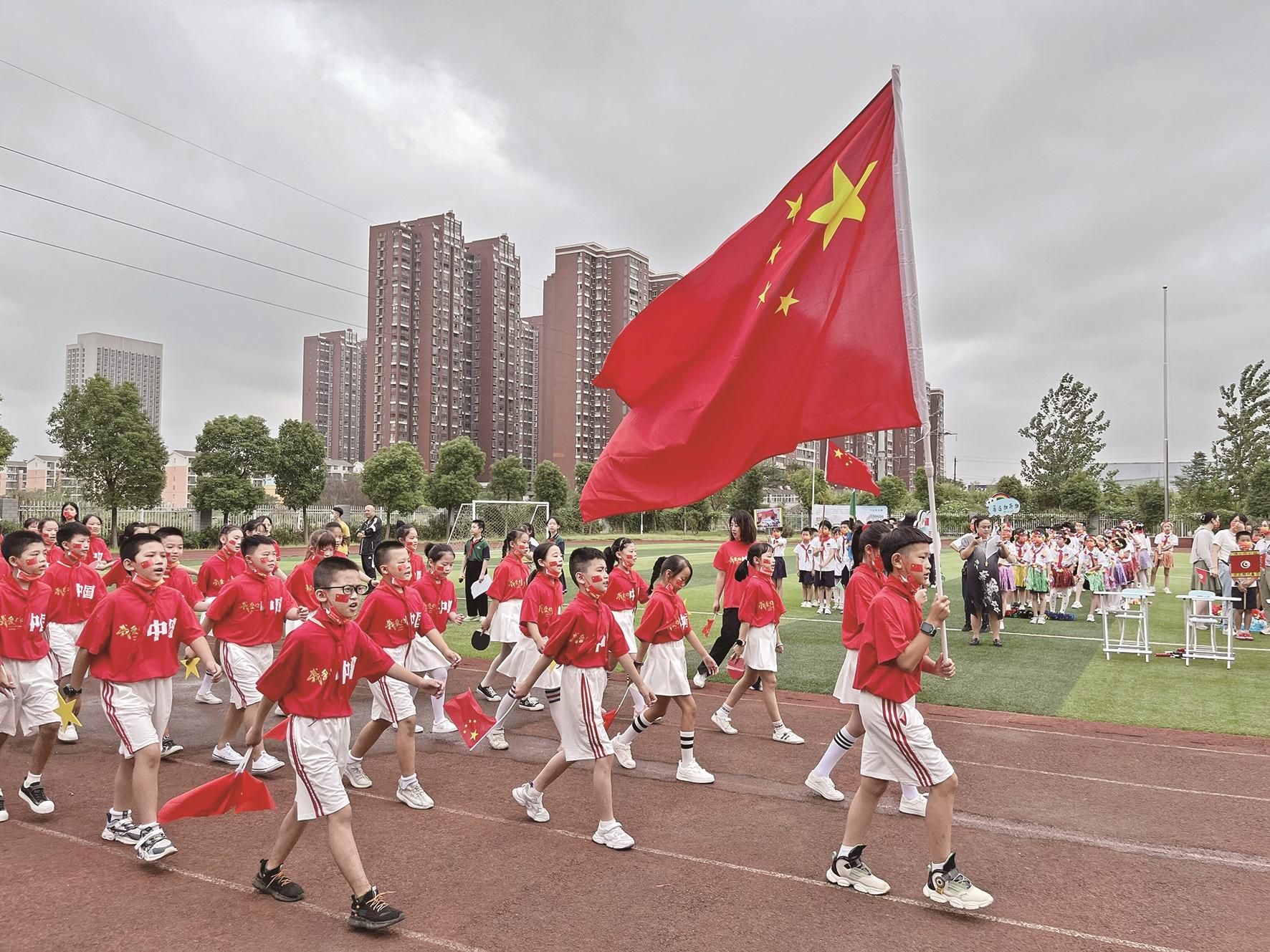 楚天都市报极目新闻讯(记者向一帆)“接下来向我们走来的是四(1)班代表队,他们向我们介绍的国家是突尼斯。”9月29日,一场别样的运动会开幕式在汉阳区快活岭小学举行。该校所有班级的学生,化身“奥运代表”,展开了一场别样的趣味运动会。