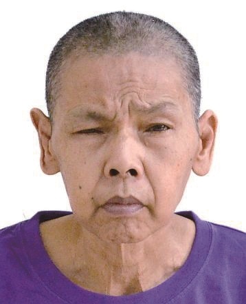 女,约75岁,左眼眼角处有一颗黑痣,不能行走