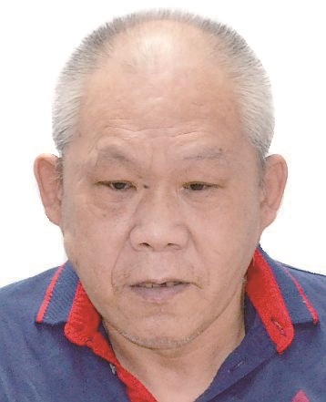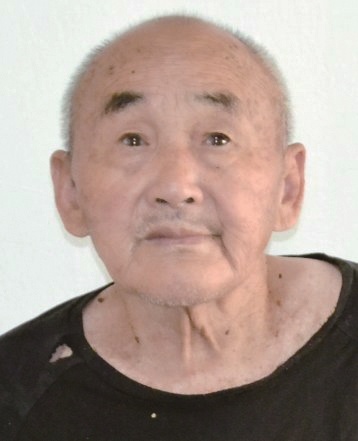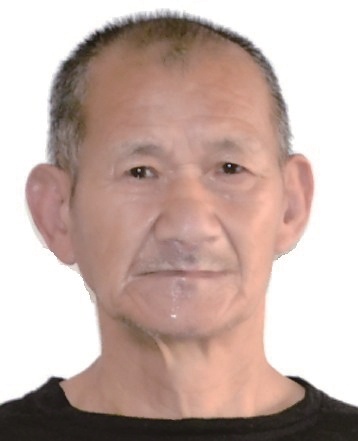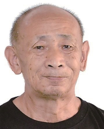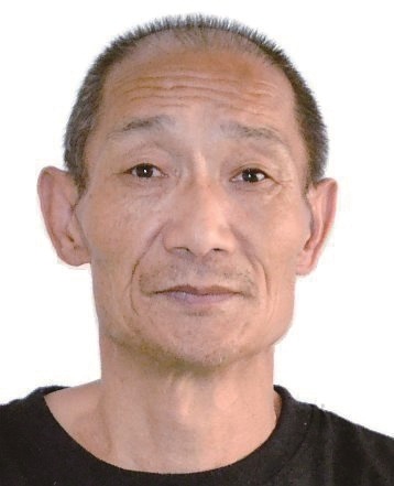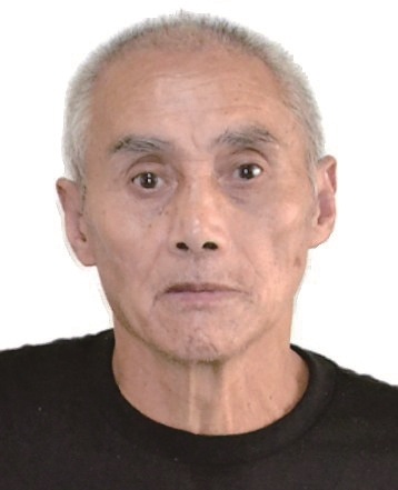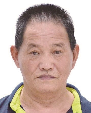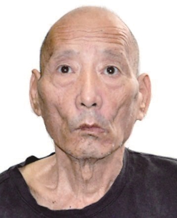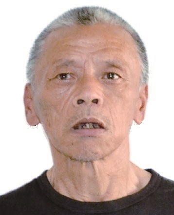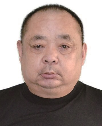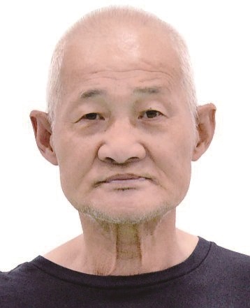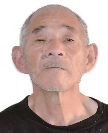 男,约64岁,身高169cm,左脸颊及右太阳穴有一黑痣, 左眼外斜