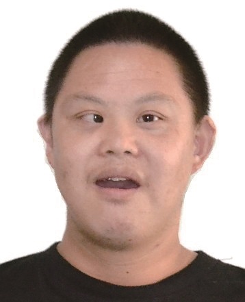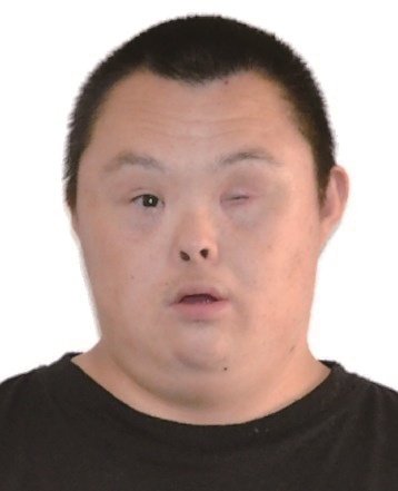 男,约32岁, 身高149cm, 唐氏综合征, 左眼残疾
