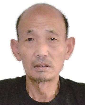 男,约58岁, 身高158cm, 无牙、嘴唇内陷,右额有一黑痣