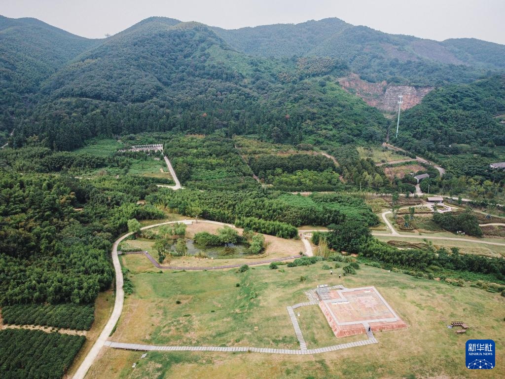 这是9月29日拍摄的瑶山遗址公园景色(无人机照片)。当日,良渚古城瑶山遗址公园试开园。瑶山遗址公园位于杭州市余杭区安溪村,占地面积约0.66平方公里。遗址公园的核心是瑶山祭坛及祭坛上分布的13座墓葬共同构成的“坛墓一体”复合遗址,展现了良渚文化的历史环境特征。新华社记者 江汉 摄