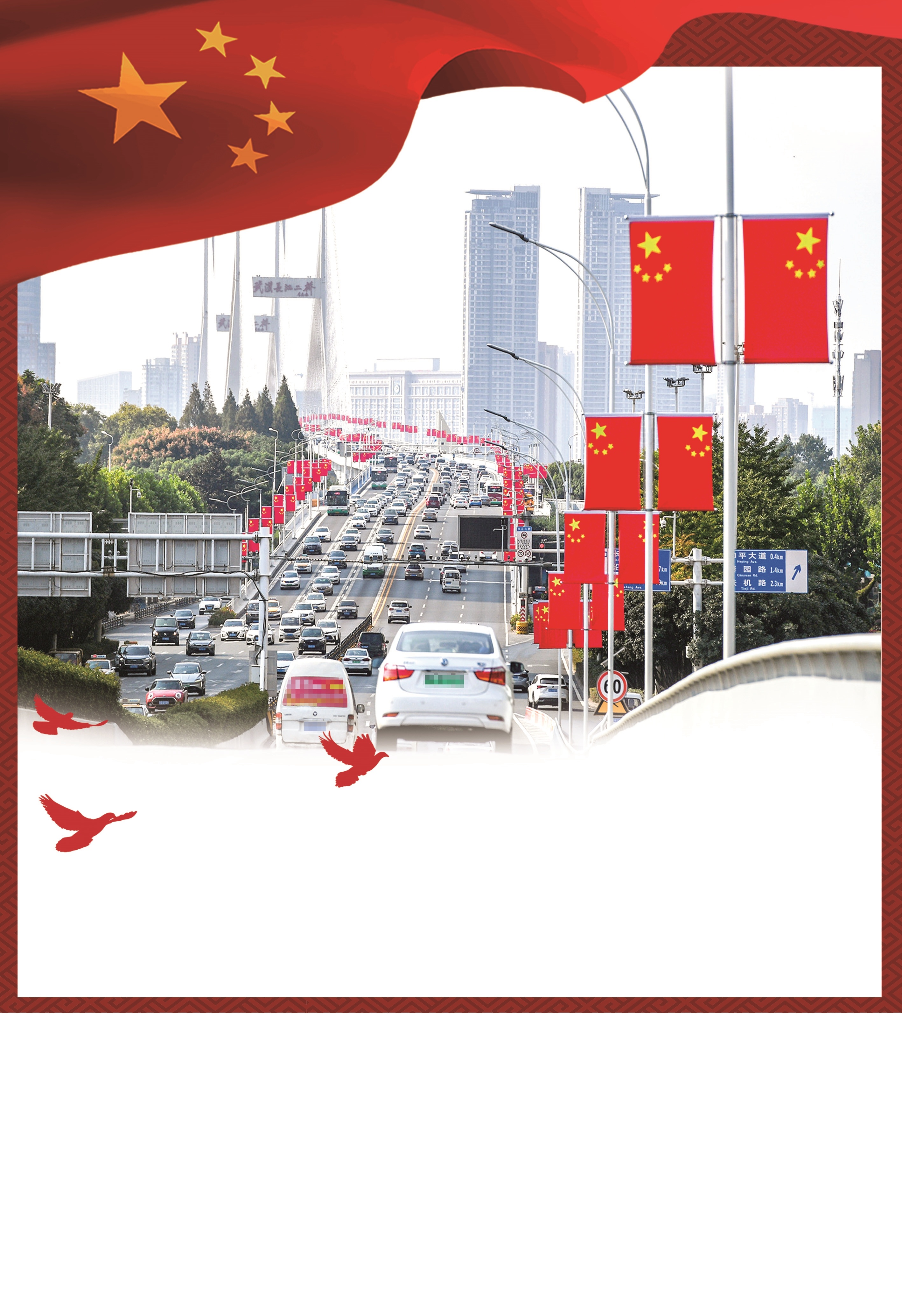 国庆节即将来临,武昌街头国旗飘扬、花团锦簇,处处洋溢着喜庆氛围。极目新闻记者在东湖路、中南路、水果湖路等路段,到处可见道路两边高高悬挂起了国旗,鲜艳的五星红旗在绿树丛中格外醒目。