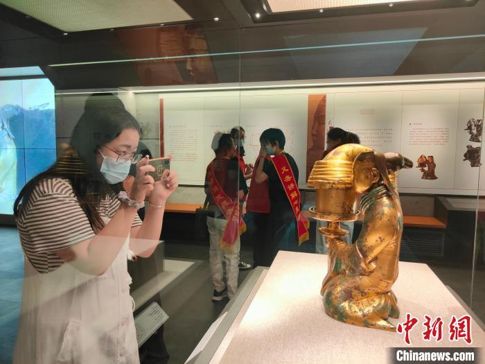 中新网郑州9月30日电 (杨大勇)被誉为中华第一灯的长信宫灯有颜值又环保,到底长啥样?30日上午,长信宫灯在河南博物院一亮相,就吸引了游客前去一睹芳容。