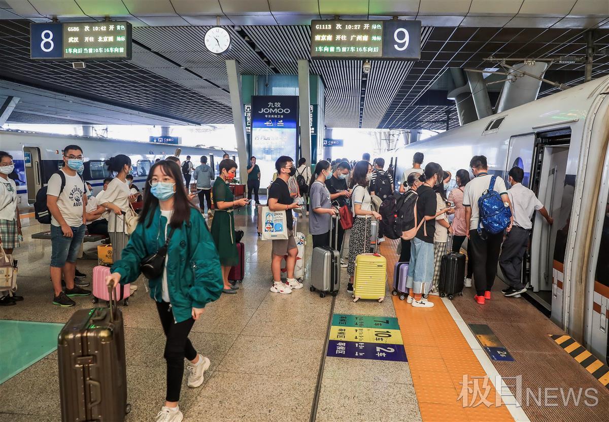 2021年9月30日,湖北武汉各大火车站迎来了十一黄金周客流高峰。