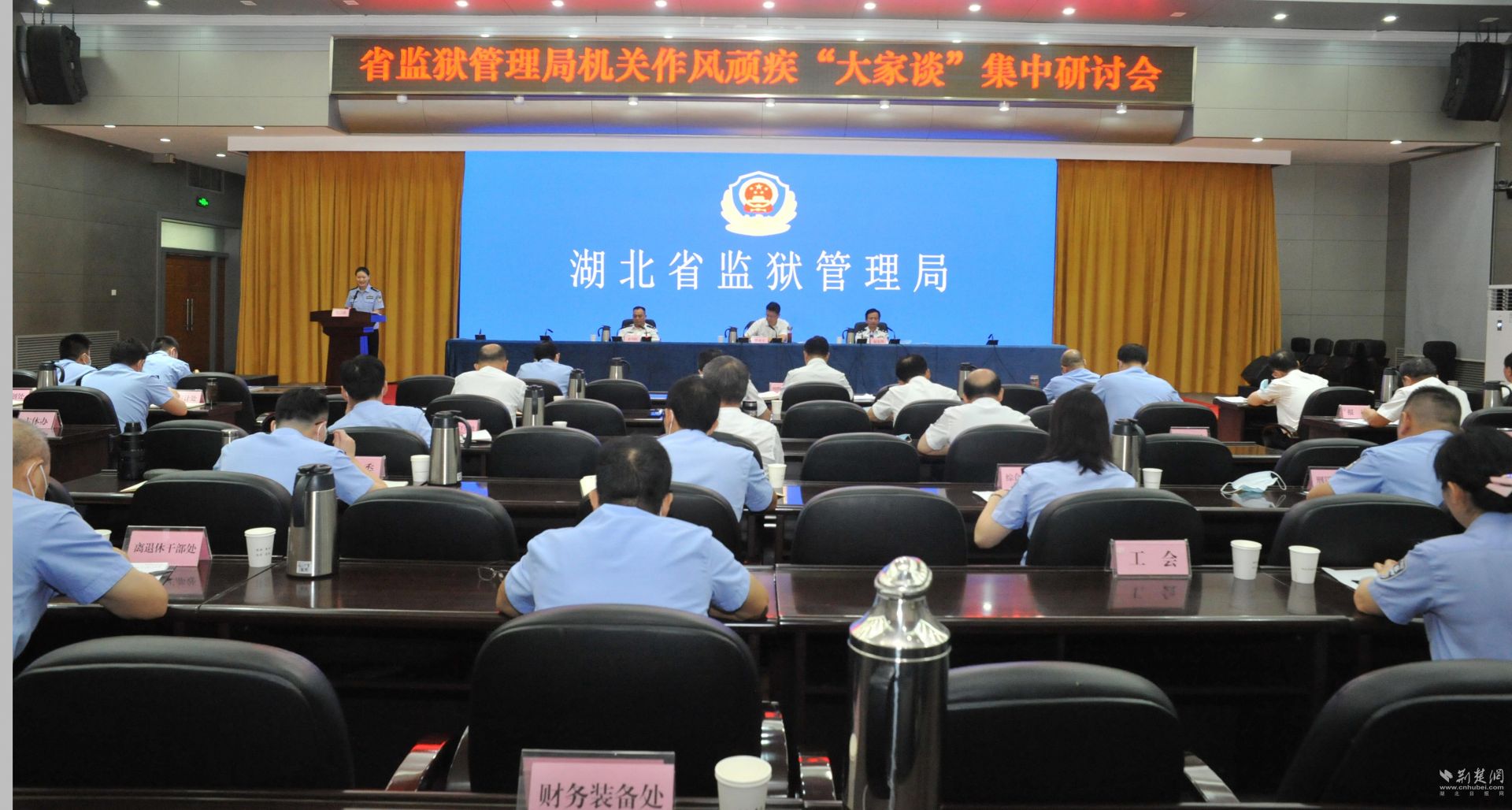 荆楚网(湖北日报网)讯(通讯员杜翔)为深化党史学习教育,进一步推进第二批队伍教育整顿查纠整改环节走深走实,争做全省政法机关表率,9月30日上午,湖北省监狱管理局召开机关作风顽疾“大家谈”集中研讨会。省监狱管理局党委副书记、政委熊亚平参加会议并讲话,省监狱管理局党委委员、纪委书记晏先华对研讨情况作点评,省监狱管理局党委委员、政治部主任齐兴旺主持会议。