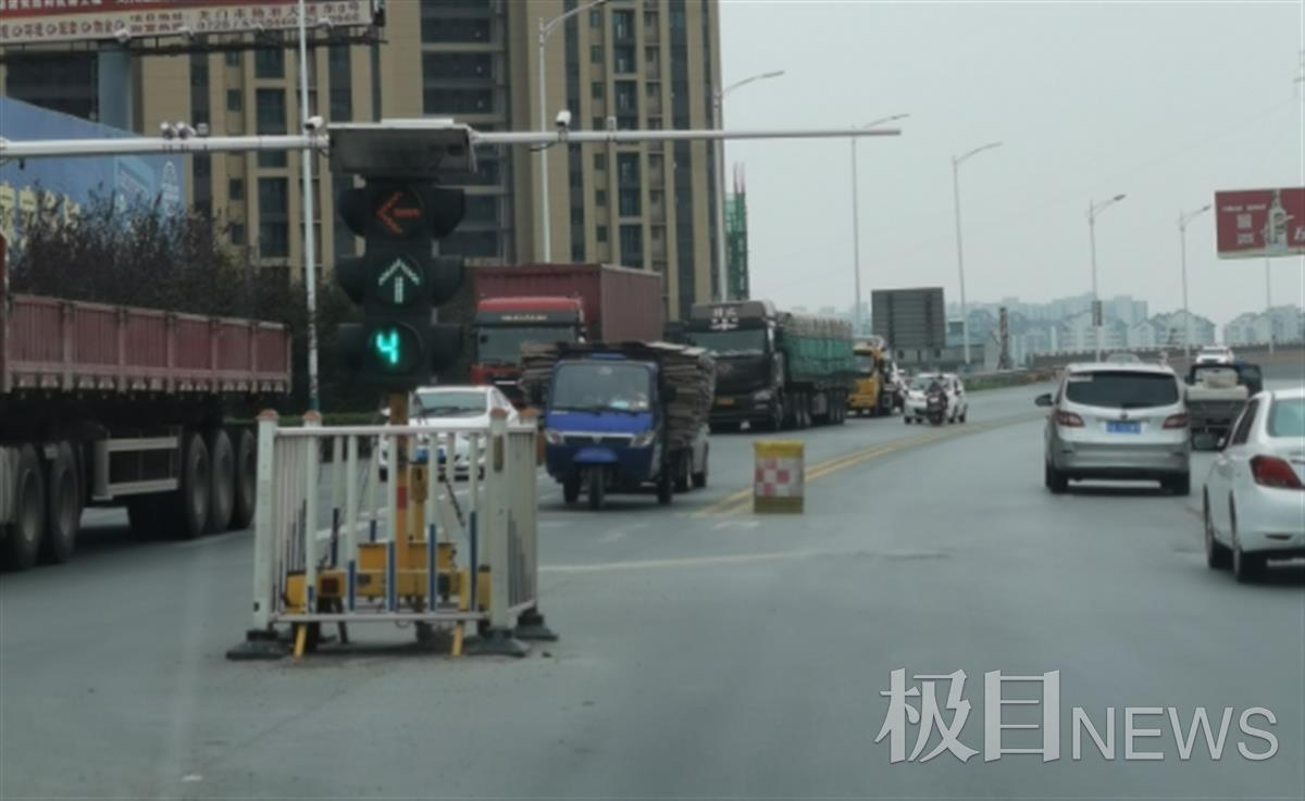 9月30日,极目新闻记者从汉江大桥北岸看到,下桥处就是一个临时红绿灯,不少下桥车辆滞留。“这个红绿灯存在很久了。”附近居民介绍,原本以为临时红绿灯“临时”设几天,想不到长期立在桥头,既不美观,也无法记录违法闯红灯车辆。