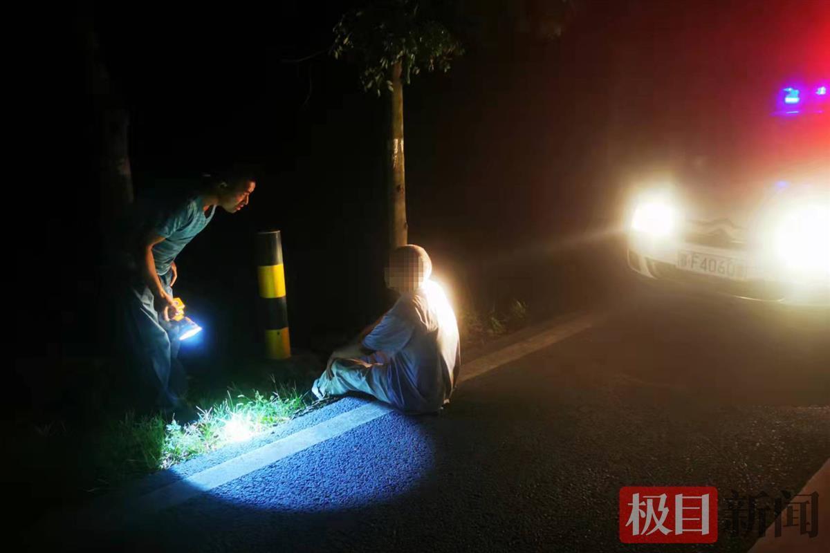 9月29日21时45分,湖北省宜城市207国道余营小学路段,一货车司机见有人躺在路边,随即报警。宜城市郑集派出所民警立即驱车赶到现场,发现该地无人,遂联系余营村主任,一并沿路找寻。5分钟后,在不远处看到一老人坐在路边,双手抱胸取暖。