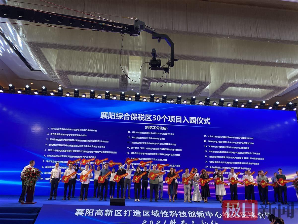 活动中,湖北绿动中钒新能源公司、保利物业服务有限公司、湖北省宏泰新城投资有限公司等59个企业项目与襄阳高新区签订投资协议,总投资金额268亿元。深圳前海中誉科技有限公司光电半导体产业集群、中兴发展有限公司华中智能制造中心等30个项目入驻综合保税区,一期厂房面积6.7万平方米,三年可产出进出口贸易额156亿元。湖北景肽药业科技有限公司用于疾病治疗的细菌微生态系统的研发与产业化、神箭神舟航天空间生物科技有限公司神箭神舟航天生物企业总部和营销总部等17个项目入驻襄阳科技城,总投资72亿元。