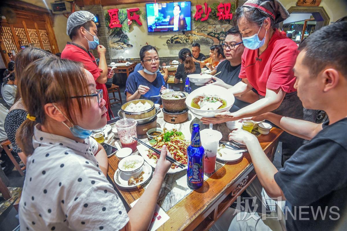 十一假期来临,原本已经火出圈的汉口万松园美食街人气更旺了。哪怕位置稍显偏僻的君豪海鲜酒楼,晚餐也是座无虚席。而雪松路上的夏氏砂锅,叫号排队进餐的食客乌泱泱地坐了一大片,其中不乏一下火车就拖着行李箱直奔餐厅的外地食客。